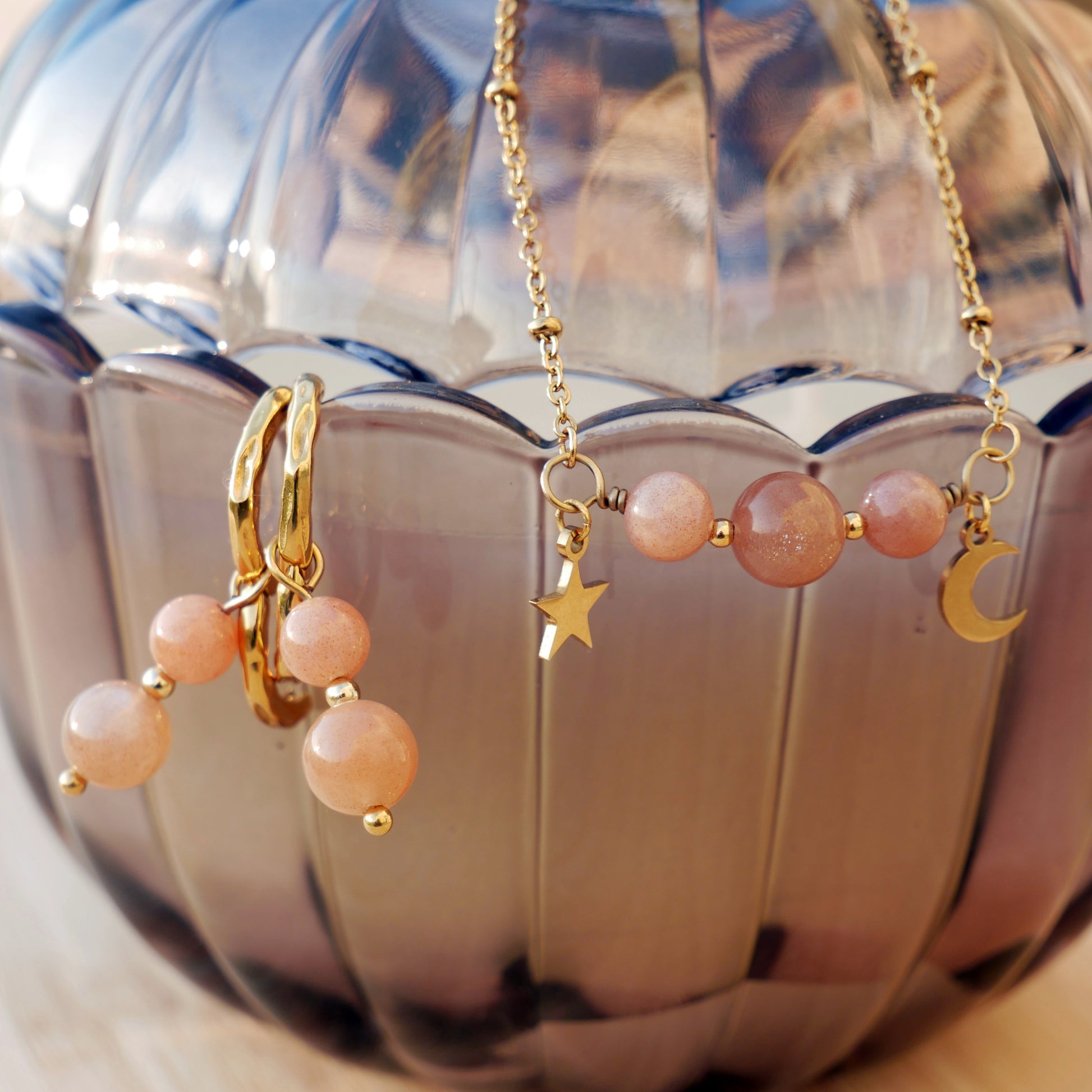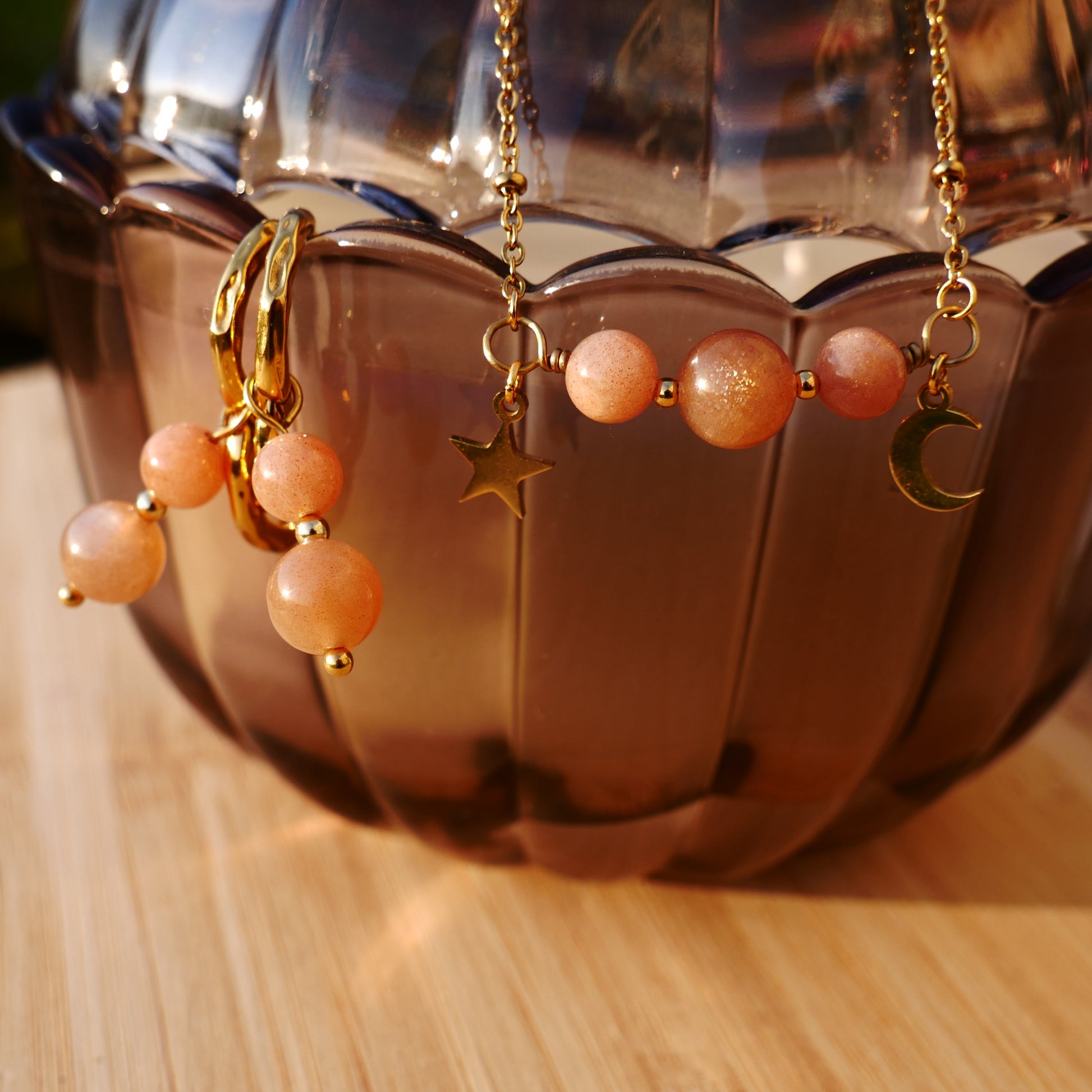 Fais briller ta lumière avec les boucles d’oreilles ⟡Luna⟡ et laisse la Pierre de Soleil révéler toute ton énergie ✨